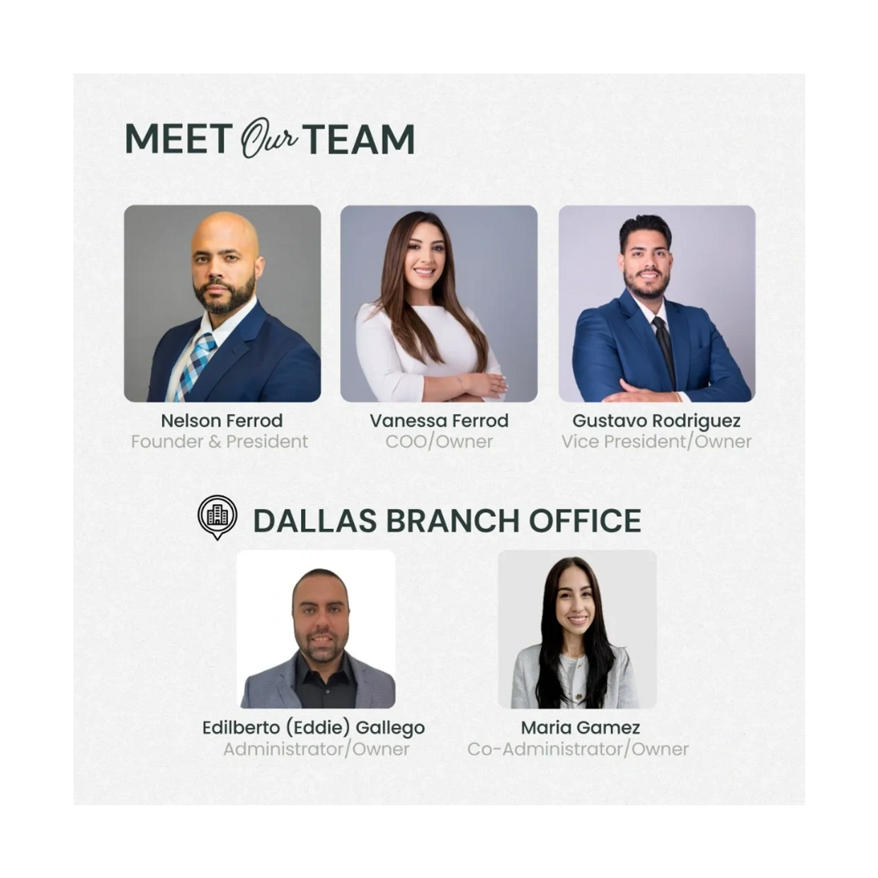 With two established locations in South Florida—serving Miami-Dade and Broward Counties and supported by a network of over 8,000 Home Health Aides—Eternal Life Services has expanded its mission to North Texas. Nelson, Gustavo, and Vanessa have partnered with Eddie and Maria, lifelong friends turned business partners, to bring their expertise and passion to the Dallas-Fort Worth Metroplex. With shared backgrounds in healthcare, telecommunications, and marketing, this dynamic team is dedicated to building an agency unlike any other—focused on excellence, innovation, and truly making a difference in the lives of those they serve.